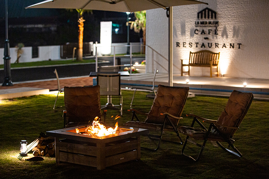 敷地の中央には、キャンプの定番「キャンプファイヤー」が出来るファイヤーピットを配置しております。マシュマロを焼くもよし、BARで頼んだドリンクを飲んで語らうもよし、お好きにお楽しみいただけます。